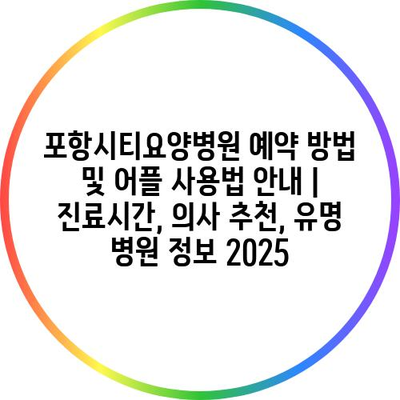 포항시티요양병원 예약 방법 및 어플 사용법 안내 | 진료시간, 의사 추천, 유명 병원 정보 2025