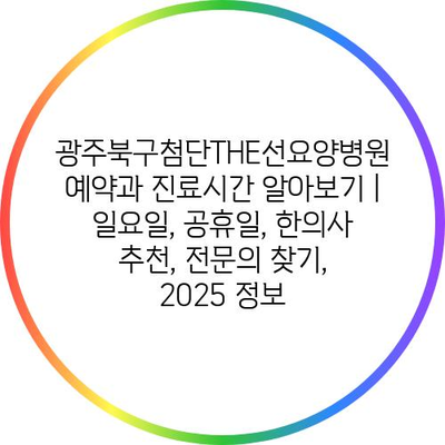 광주북구첨단THE선요양병원 예약과 진료시간 알아보기 | 일요일, 공휴일, 한의사 추천, 전문의 찾기, 2025 정보