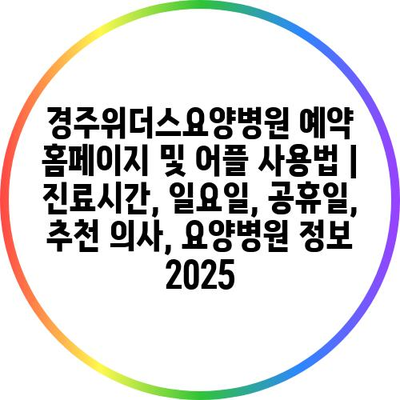경주위더스요양병원 예약 홈페이지 및 어플 사용법 | 진료시간, 일요일, 공휴일, 추천 의사, 요양병원 정보 2025