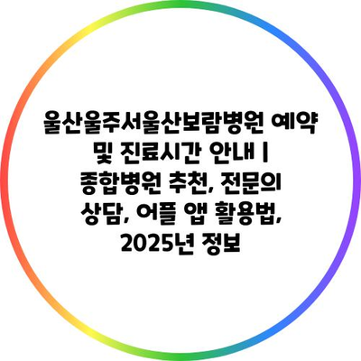 울산울주서울산보람병원 예약 및 진료시간 안내 | 종합병원 추천, 전문의 상담, 어플 앱 활용법, 2025년 정보