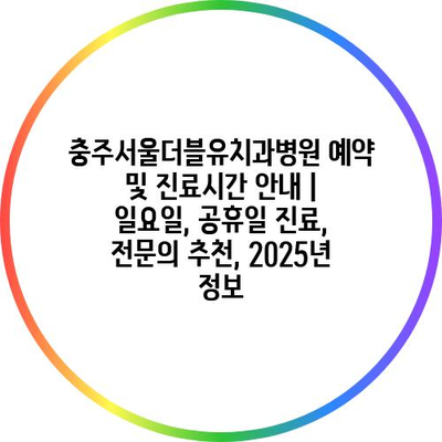 충주서울더블유치과병원 예약 및 진료시간 안내 | 일요일, 공휴일 진료, 전문의 추천, 2025년 정보