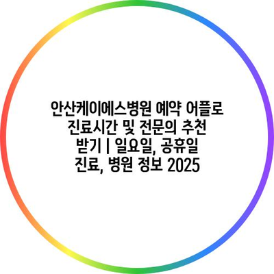 안산케이에스병원 예약 어플로 진료시간 및 전문의 추천 받기 | 일요일, 공휴일 진료, 병원 정보 2025