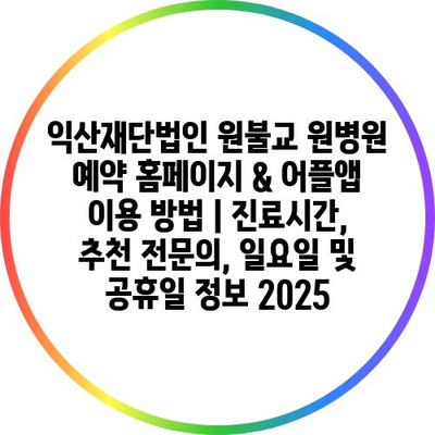 익산재단법인 원불교 원병원 예약 홈페이지 & 어플앱 이용 방법 | 진료시간, 추천 전문의, 일요일 및 공휴일 정보 2025