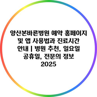 양산본바른병원 예약 홈페이지 및 앱 사용법과 진료시간 안내 | 병원 추천, 일요일 공휴일, 전문의 정보 2025