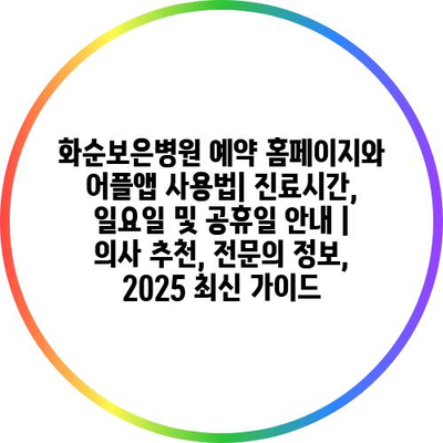 화순보은병원 예약 홈페이지와 어플앱 사용법| 진료시간, 일요일 및 공휴일 안내 | 의사 추천, 전문의 정보, 2025 최신 가이드