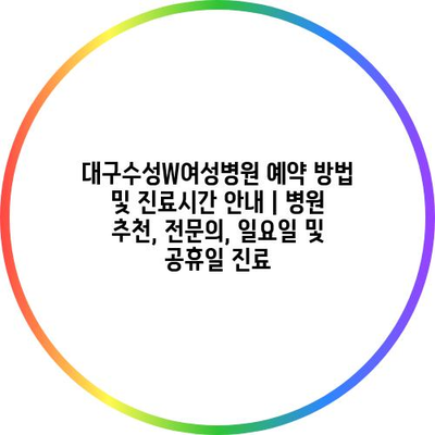 대구수성W여성병원 예약 방법 및 진료시간 안내 | 병원 추천, 전문의, 일요일 및 공휴일 진료