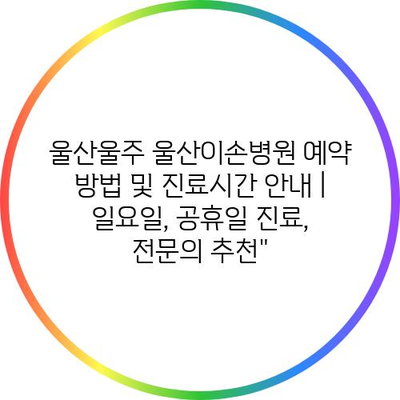 울산울주 울산이손병원 예약 방법 및 진료시간 안내 | 일요일, 공휴일 진료, 전문의 추천”